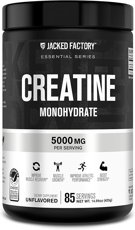 Jacked Factory Creatine Monohydrate Powder 425g - 5g Daily Creatine Supplement for Men and Women, Vegan-Friendly, Third-Party Tested - 85 Servings, Unflavored