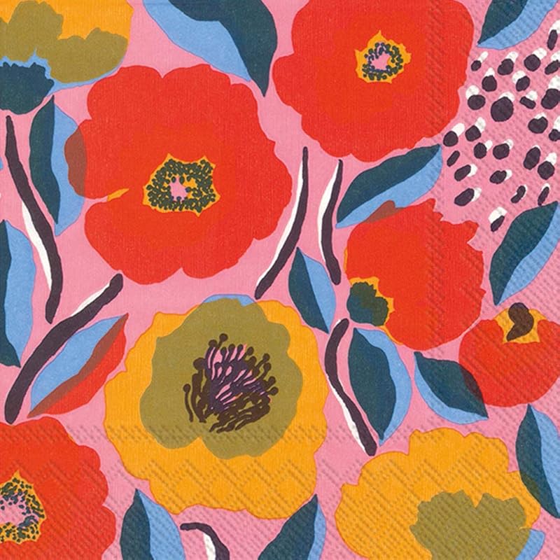 Boston International IHR Ideal Home Range 3-Ply Paper Napkins Marimekko Collections Party Napkin Pack, Cocktail Size, Rosarium Rose, 5" x 5", 20-Count