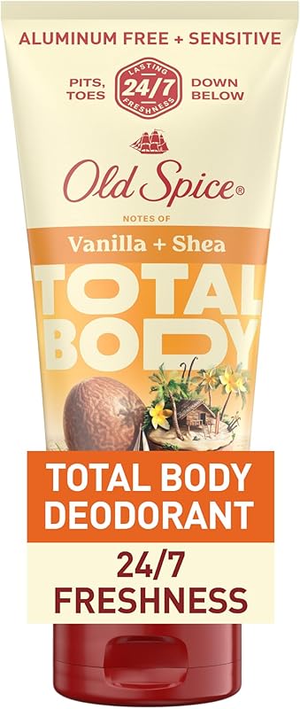 Old Spice Whole Body Deodorant Cream for Men, Aluminum Free, Vanilla + Shea Scent, 24/7 Odor Protection, 24/7 Lasting Freshness, Dermatologist Tested, Gentle on Skin, Safe to Use All Over, 3.0 oz