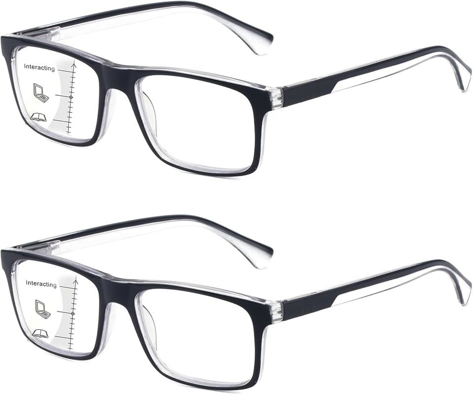 Missfive 2Pack Versatile Progressive Multifocus Reading Glasses Men, Anti-Blue Light Computer Readers, Durable Spring Hinge