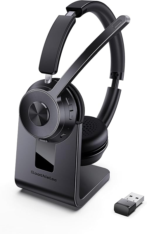(Upgraded Version) Wireless Headset, Bluetooth Headset with Noise Cancelling Microphone, Best Headphones with Mic Mute & USB Dongle for PC/Computer/Laptop/Cell Phones/Remote Work/Call Center