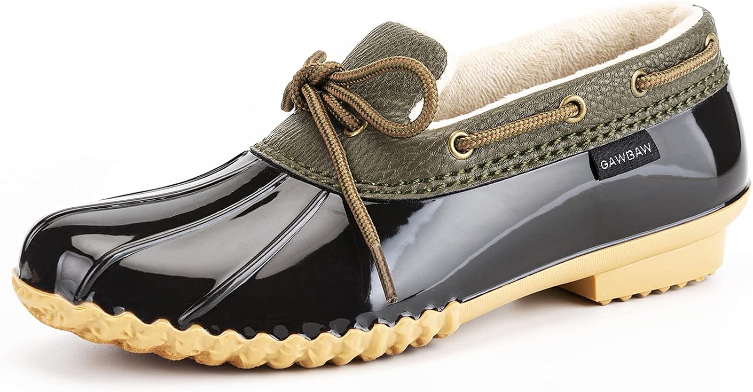 GAWBAW Flat Duck Shoes for Women - Slip On Waterproof Winter Ankle Rain Boots Short Garden Shoes
