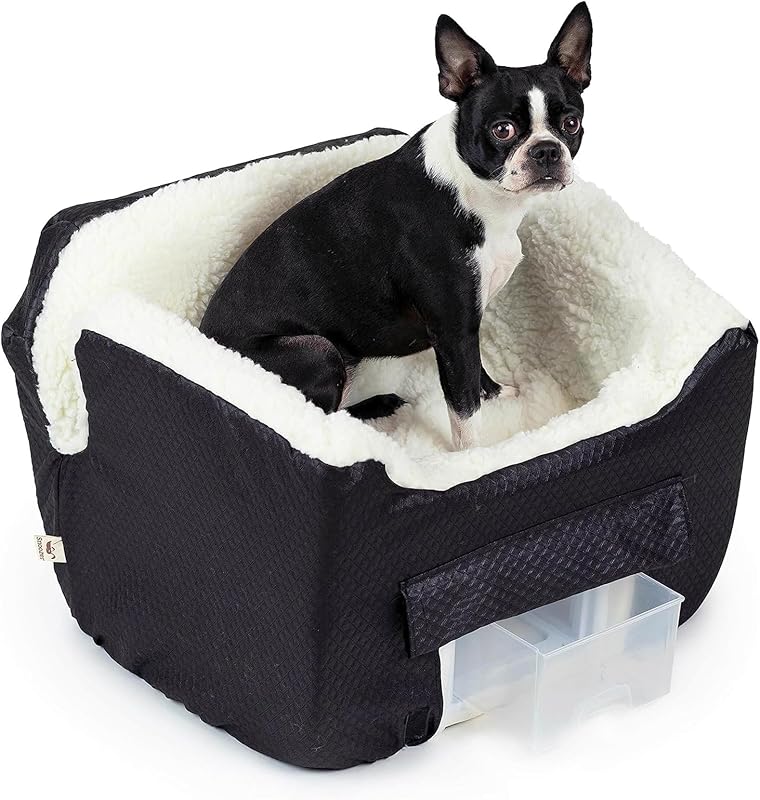Snoozer Lookout I Car Seat - Dog Car Seats for Small Dogs, Puppy Booster Bed for Small Sized Pets up to 18 Lbs, Elevated, Washable - Size S, Black Quilted