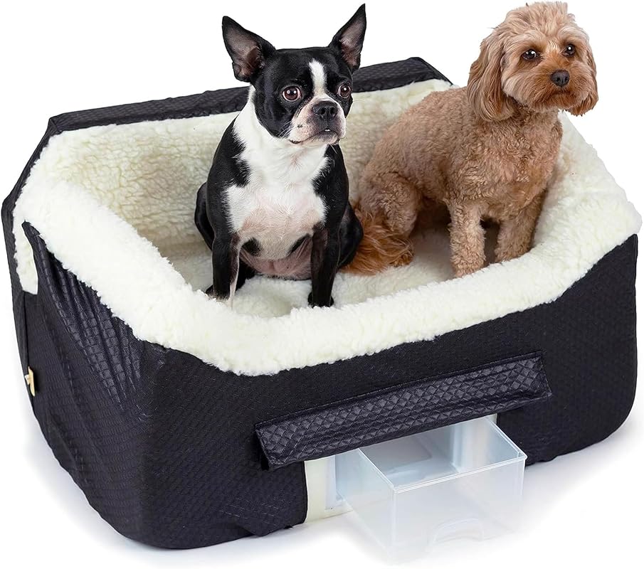 Dog Car Seat for Small/Medium Dogs Under 35lbs,Memory Foam Dog Booster Seats,Detachable and Washable Traval Pet Car Seat,Dogs Bed with 2 Safety Belts(Balck)
