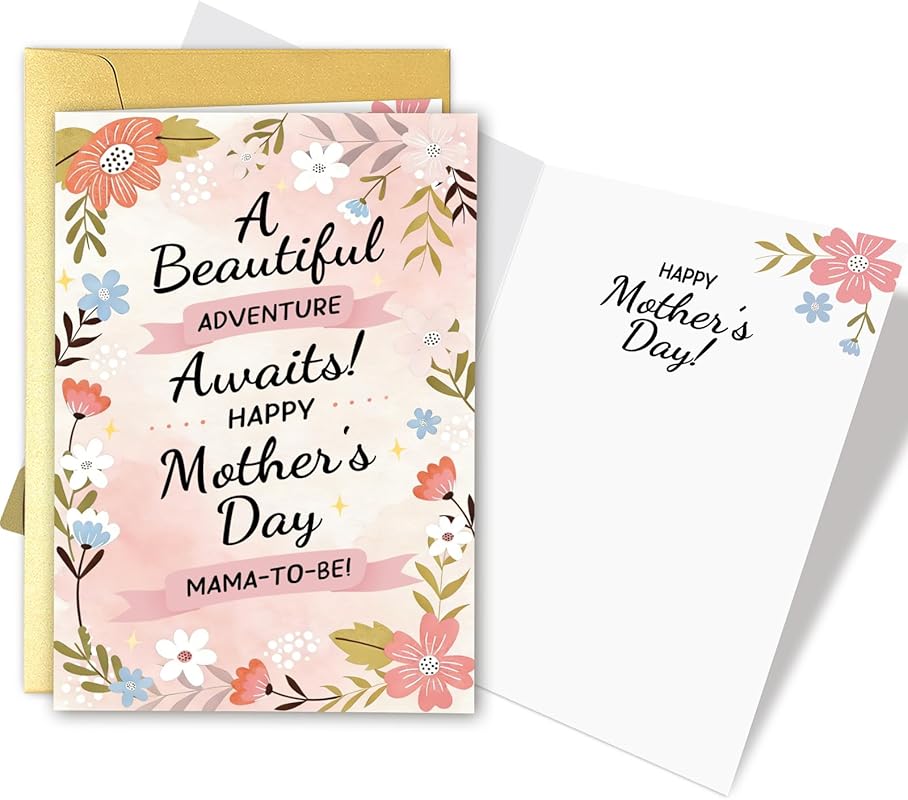 Supoeguk Lovely Mama to Be Mothers Day Card Gift, First Mother's Day Card for New Mom, A Beautiful Adventure Awaits!