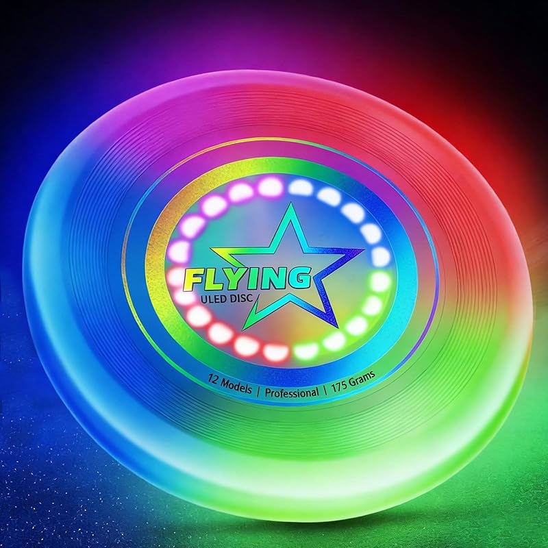 Light Up Flying Disc Toy Kids, Adults, Teens – 7 Glow in the Dark Modes, 22 Bright LEDs, Rechargeable, Outdoor Flying Sport Disc for Night Games, Family Fun, Beach, Park, Camping