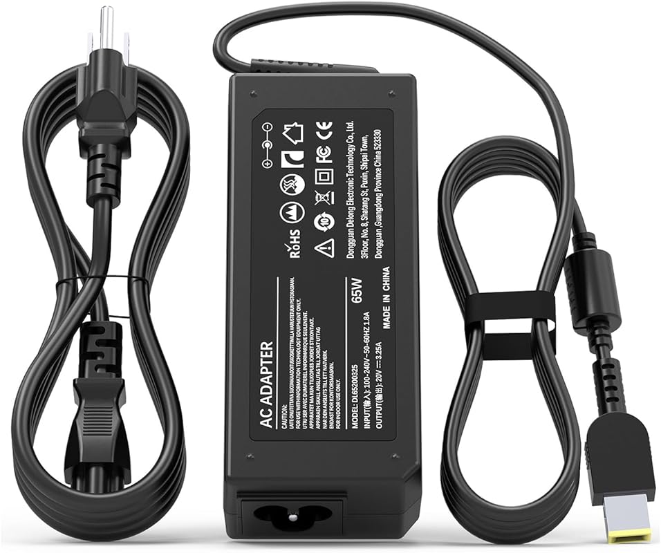 VUOHOEG 65W Laptop Charger Compatible with Lenovo ThinkPad L440 L450 L460 L540 T440 T450 T460 E440 E450 E550 E560 X240 X250 X260 Yellow Square Tip AC Adapter