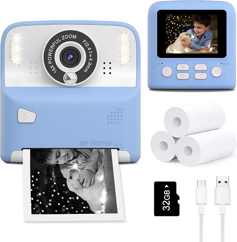 Kids Camera Instant Print, Kids Digital Camera with Photo Printing, Print Paper & 32GB Card, Kids Print Camera Birthday Gifts for Girls Boys 3 4 5 6 7 8 9 10 Year Old