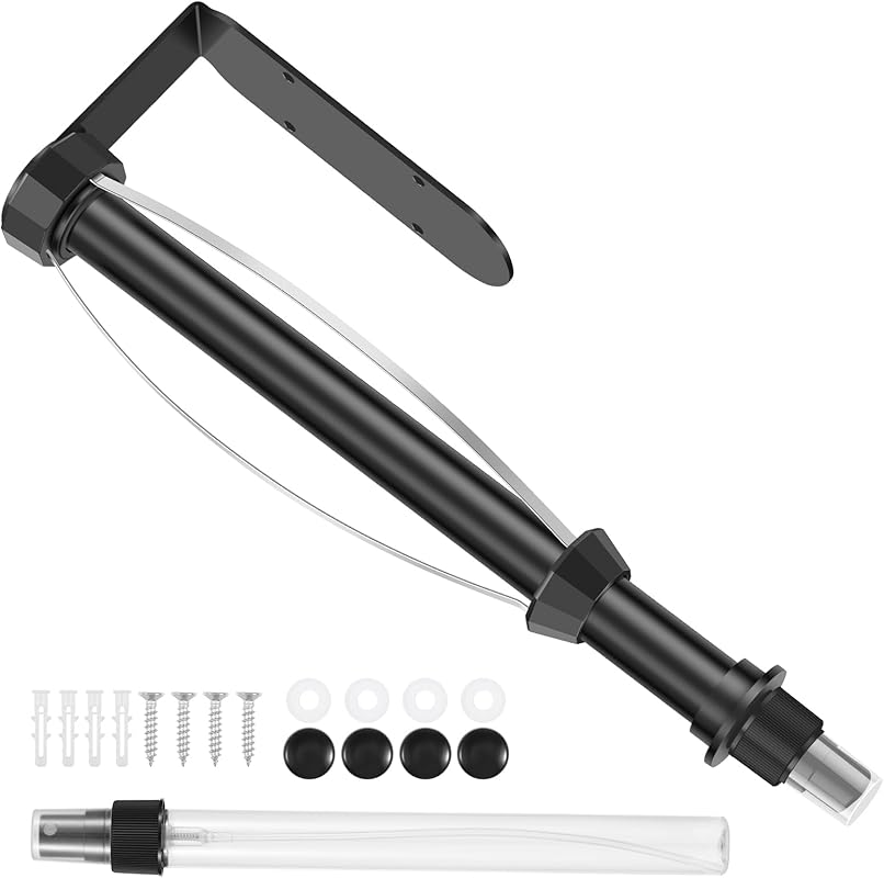 ZJRDYYK Paper Towel Holder with Spray Bottle, Single Hand Operable Paper Towel Holder Under Cabinet Damping, Self-Adhesive or Drilled Easy Tear Paper Towel Holder Wall Mount (Black)