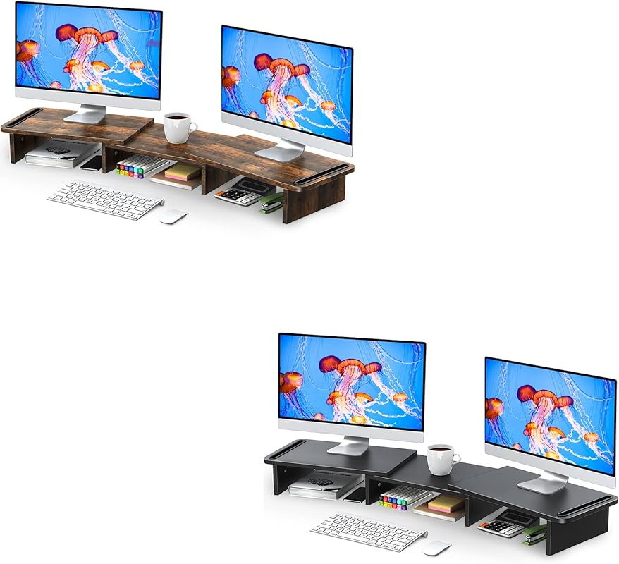 Zimilar Dual Monitor Stand Riser, Monitor Stand with Adjustable Length and Angle(Rust Brown Large) Dual Monitor Stand Riser, Monitor Stand with Adjustable Length and Angle(Black Large)