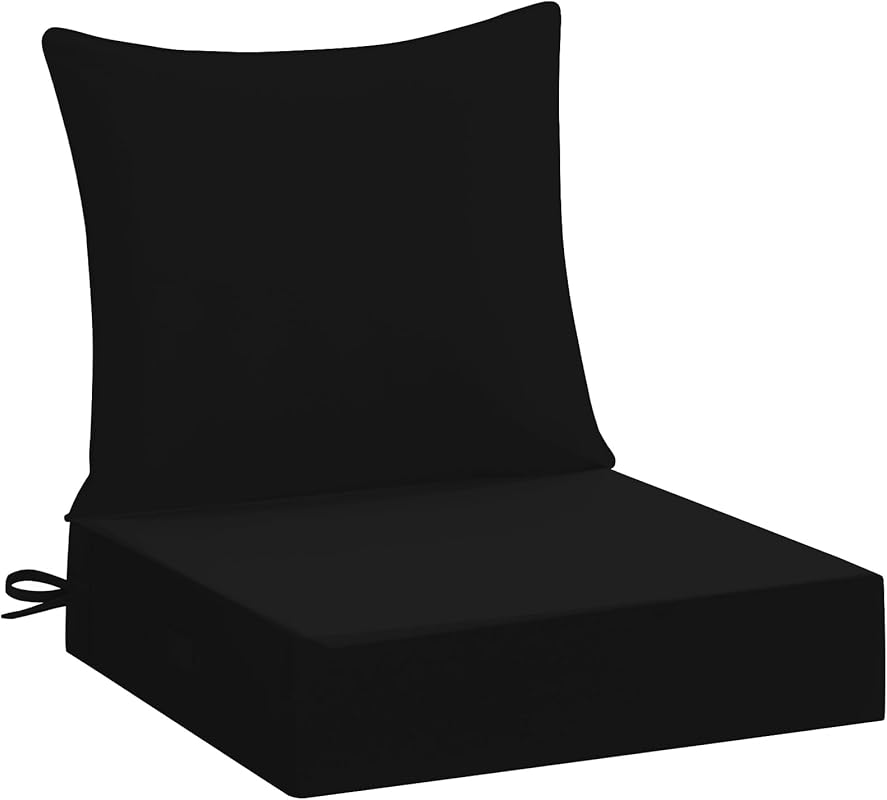 downluxe 24x24 Outdoor Chair Cushions, Waterproof Fade Resistant Patio Furniture Cushions with Handle & Removable Cover, Deep Seat Outdoor Cushions for Sofa, Couch and Patio Chairs, Black