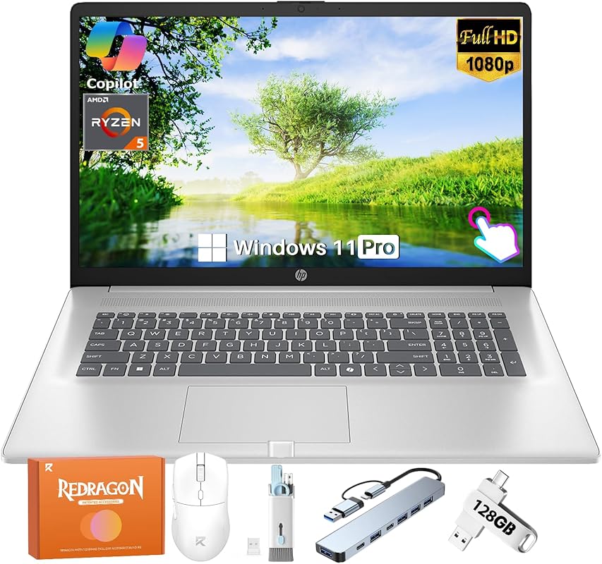 HP 2026 17.3 Inch Touchscreen Laptop, AMD 12-Threads Ryzen 5 7430U(up to 4.3 Ghz), 16 GB RAM, 1 TB SSD, HD+ Anti-Glare Display, Copilot-AI, Wi-Fi 6, Win 11 Pro, for Business & Student, w/Accessories